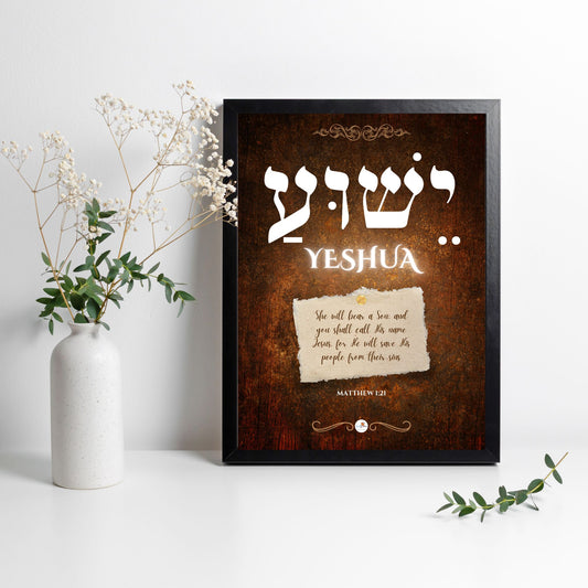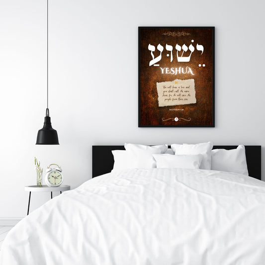 Bible verse frame - Eng & Hebrew - A3 - Yeshua - Matt 1:21